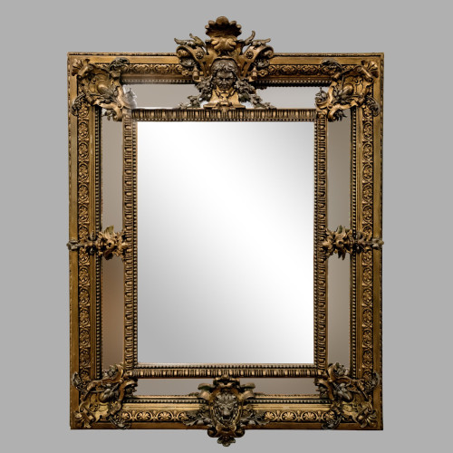 Unikatowy egzemplarz pałacowego lustra ściennego. Duża rzadkość na rynku antykwarycznym. Lustro powstało w drugiej połowie XIX wieku. Wspaniała niezwykle dekoracyjna drewniana rama ozdobiona polichromią.