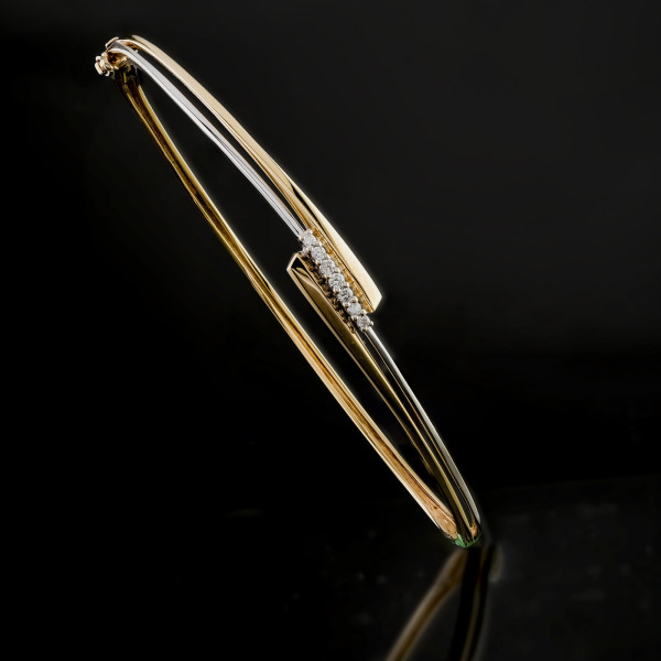 A charming little thing suitable for all occasions. Made of white and yellow gold, the band is delicately decorated with diamonds.