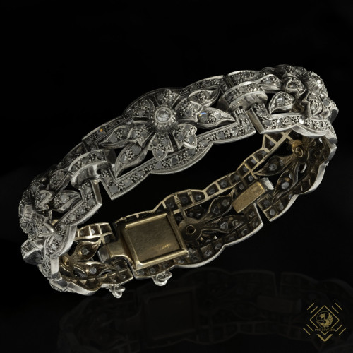 Bransoleta z diamentami starego szlifu i rozetami diamentowymi