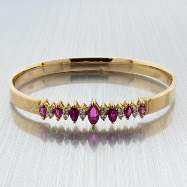 A charming piece for its stunning simplicity, signed by goldsmith Daniel S. Rine! The bracelet was created in the twentieth century and is distinguished not only by an interesting clasp, but above all by the extraordinary beauty of its simple classic form. The completely smooth rim is decorated with small diamonds and interestingly polished rubles, and will not only be a perfect complement to an evening outfit, but also a decoration for an everyday elegant outfit.