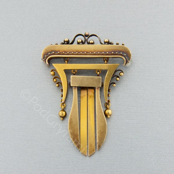 14 carat gold brooch covered with a higher purity gold coating. The jewel was created in the 19th century in a styling referring to ornaments made and used by medieval European knights. The goldsmith who made the brooch, although he drew on the design of the Middle Ages, gave it a character that perfectly fits the jewel into the canon of beauty of contemporary jewelry. Thanks to the patina and lack of unnecessary decorations, it can also decorate a man's tie or ascot.