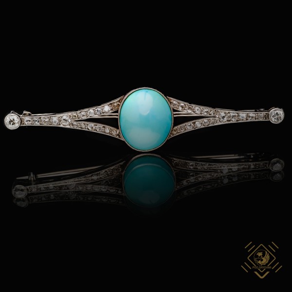 Art Deco Brooch with Turquoise and Diamonds