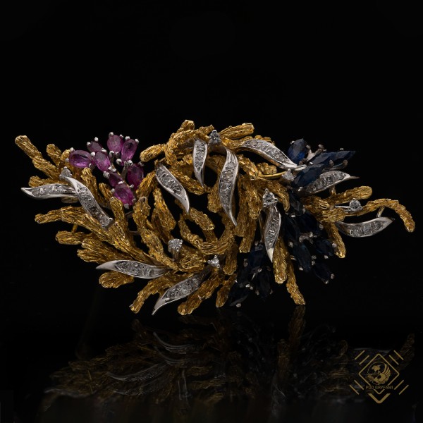 Brooch with Diamonds, Rubies and Sapphires