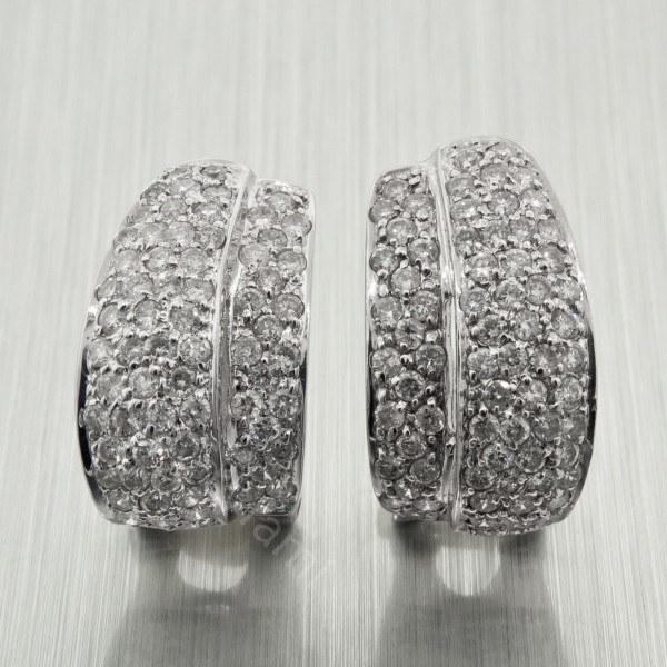 Over a hundred sparkling diamonds make these earrings for every occasion. The piece is made of white gold decorated with diamonds, ideally suited to the ear.