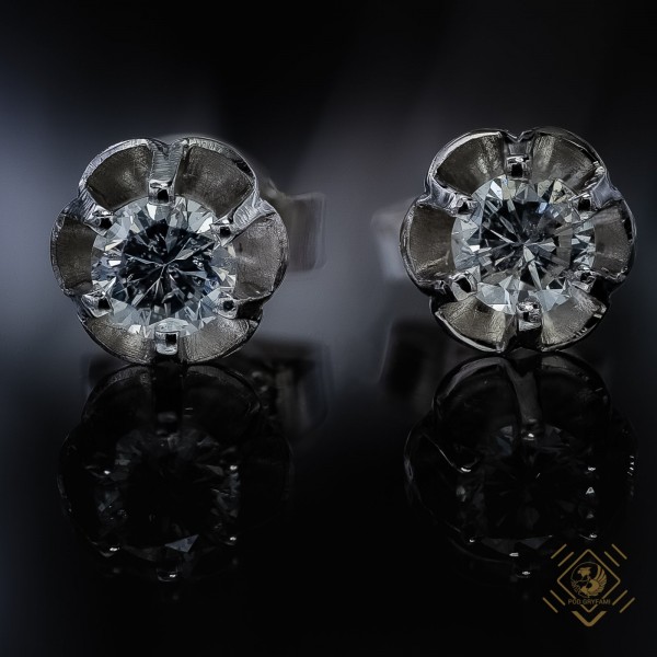 Classic minimalism, ideally round diamonds set in six petals made of white gold. The piece is an ideal discreet decoration for the ear.