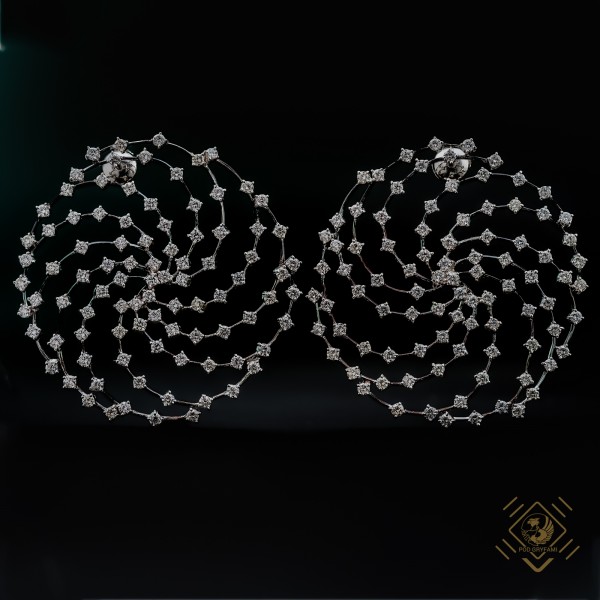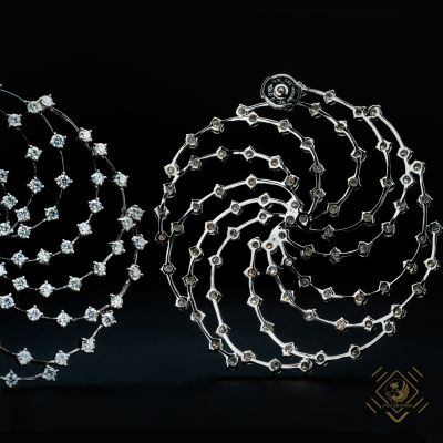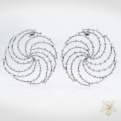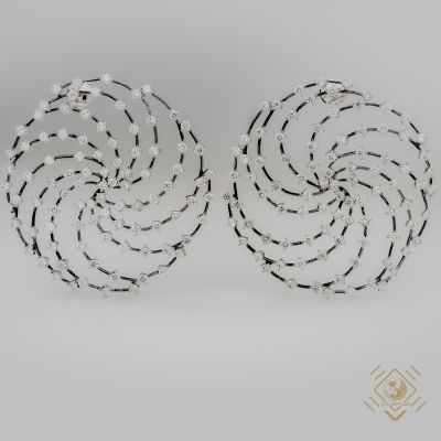 Snail shell shaped earrings made from white gold, perfectly accented with round diamonds. This piece is quintessentially Haute Couture jewelry, luxury pieces made to order. Its unique pattern delicately covers the female ear with a diamond web.