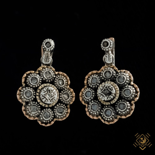 Wspaniała praca z przełomu XIX i XX wieku. Niezwykle kobiecy delikatny wzór kwiatowy. Oprawa wykonana ze srebra na bazie wysokiej próby złota, kameryzowana rozetami diamentowymi.