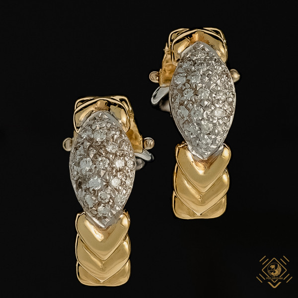 Delicate tear shaped earrings encrusted with extremely gleaming diamonds set in high-quality gold. A simple, very feminine pattern beautifully decorates the earlobes and fits them perfectly.