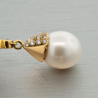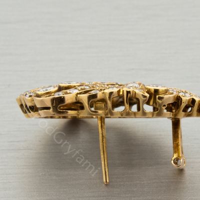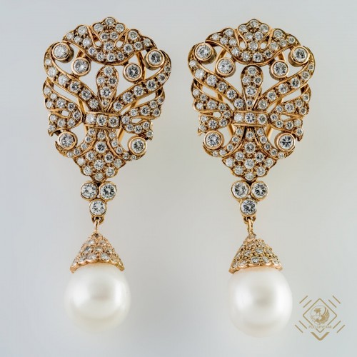 Na niewielkiej powierzchni fantazyjnie giętego wzoru skrzy się 210 sztuk diamentów, całości dopełniają idealnie dobrane perły o srebrzystobiałej barwie. Doskonałe uzupełnienie wieczorowej kreacji.