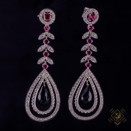 Kolczyki z diamentami, turmalinami i onyksami