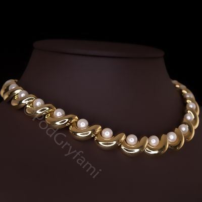 18 carat gold necklace in the form of horseshoes, each of which is decorated with a perfectly matched round, creamy pearl. The jewel, taking its stylistic cues from La Belle Epoque, is classic and elegant.