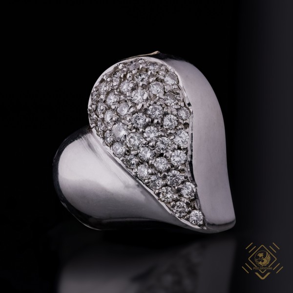 A lovely trinket crafted in white 18 carat gold in the shape of a half-heart covered with diamonds.