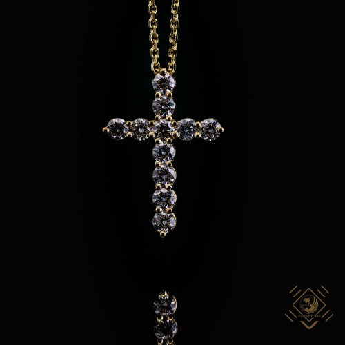 Połyskujący diamentami delikatny krzyżyk zawieszony na wykonanym z żółtego złota łańcuszku. Naszyjnik znakomicie nadaje się na prezent z okazji różnych uroczystości ( chrzciny, komunia , bierzmowanie ). Stanowi również elegancką ozdobę dekoltu.