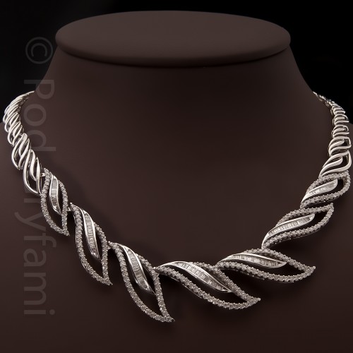 Wijący się wokół szyi skrzący się ponad trzystoma diamentami klejnot może stanowić wspaniałą ozdobę dekoltu w sam raz na wieczorowe wyjście.