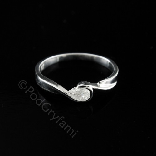 W obrączce z białego złota osadzona diamentowa łezka. Delikatny wzór z lśniącym diamencikiem. Pierścionek świetnie nadaje się na prezent z okazji urodzin, zaręczyn czy też ważnej rocznicy.