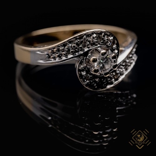 Niewielki osadzony centralnie w splocie dwóch fal diament, którego blask potęgują drobne diamenciki wypełniające kształt fali.