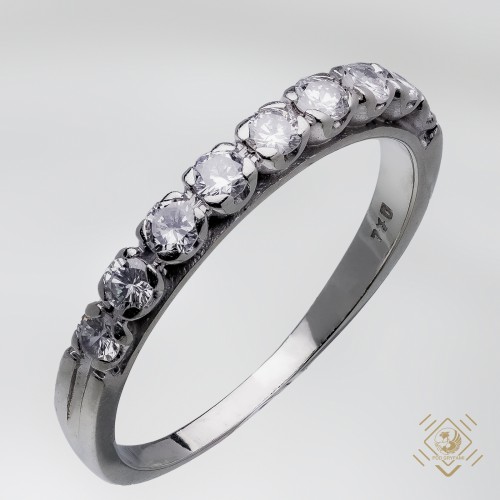 Klasyczna obrączka wykonana z białego złota ozdobiona diamentami. Prosta, ponadczasowa forma doskonale komponująca się w duecie z innym klejnotem na dłoni.
