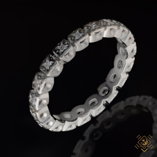 Obrączka typu ,,Eternity" ( wieczność ) wykonana z białego złota ozdobiona idealnie dobranymi diamentami o identycznym szlifie. Doskonały prezent ślubny i nie tylko. Wspaniale prezentuje się również w zestawieniu z innym pierścionkiem.
