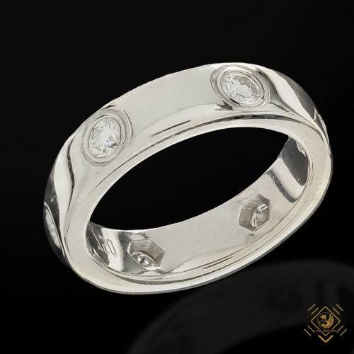 Urocza, niewielka obrączka kameryzowana idealnie dobranymi diamentami. Doskonały pomysł na prezent z dedykacją na wieczność.