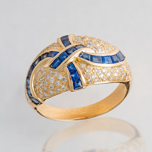 Pierścień z diamentami i szafirami