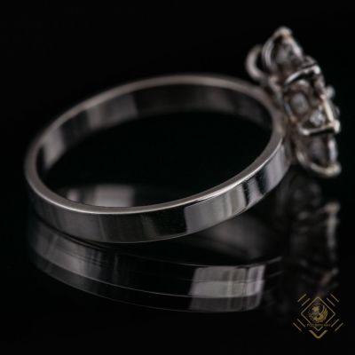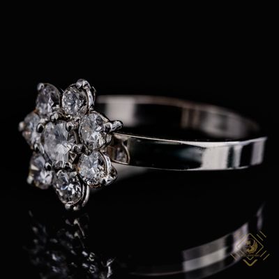 Wykonany z białego złota pierścionek w formie kwiatu stokrotki, którego płatki zdobią starannie wyselekcjonowane diamenty. Delikatna ozdoba dłoni na co dzień i na wyjście.