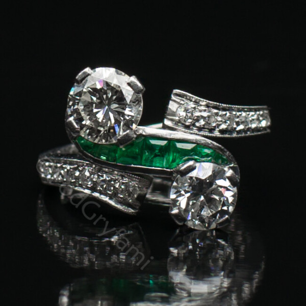 Diamond ring with emeralds