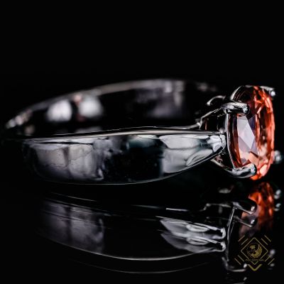 A simple form 18-carat white gold ring brings out all the beauty of the centrally placed stone. Spinel, which belongs to a group of extremely rare minerals, owes its name to the sharp-edged shapes of crystals (spine from Latin). This stone, known since ancient times, supposedly raises levels of life energy by adding vital forces to the body. Elegant palm decoration.