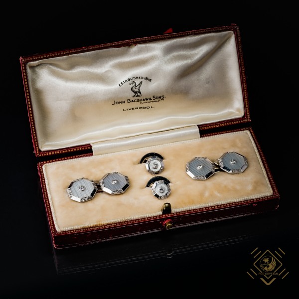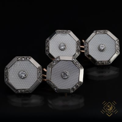 Platinum and gold cufflinks with a small diamond accent in an elegant case. A sophisticated addition for both a gentleman or a lady.