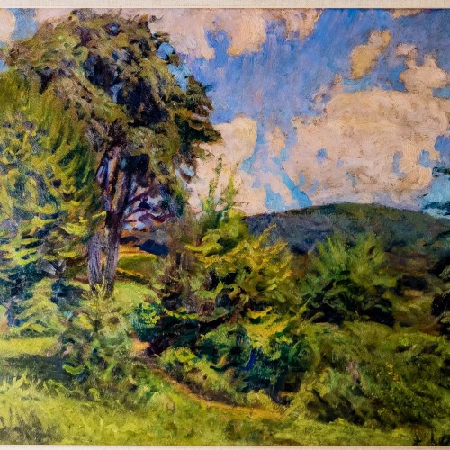 Praca emanuje soczystością różnych odcieni zieleni, które w zderzeniu z błękitem nieba przetykanym bielą pierzastych cumulusów tworzą niezwykłe wiosenny pejzaż. Kompozycja zbudowana za pomocą większych barwnych plam w technice impastowej świadczy o tym, że jest to późniejsza praca artysty, w której widzimy tendencje kolorystyczne i impresjonistyczne. Niebudząca zastrzeżeń sygnatura umieszczona w lewym dolnym rogu L Misky.
