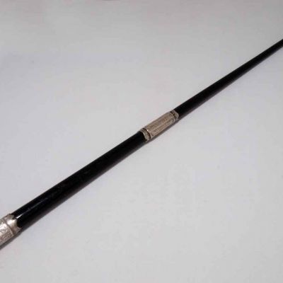 Conductor's baton for an orchestra or choir. This design was introduced in 1810. The piece presented here is made of light wood, probably balsa and decorated with silver tips. In the central part is an engraving for the conductor of the "ALICE STREET P.M. CHOIR" from 5 December 1912.