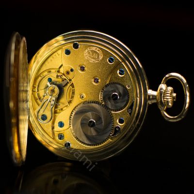 Klasyczny zegarek kieszonkowy wykonany ze złota na początku XX wieku. Naciąg mechaniczny. Uroku dodaje niewielki sekundnik oraz zachowane w dobrym stanie oryginalne etui. Niewątpliwym atutem jest również marka i jej historia.
