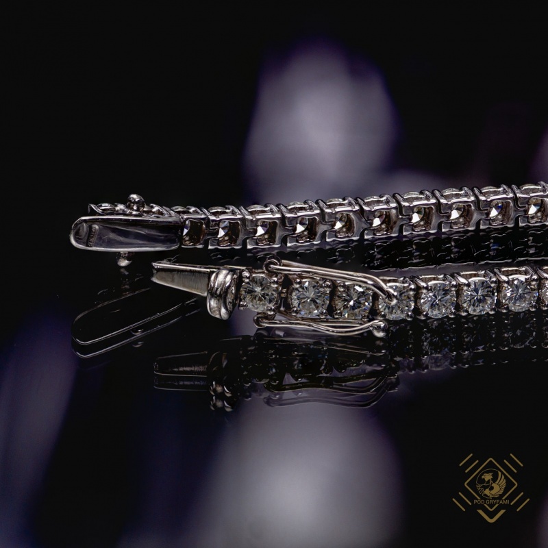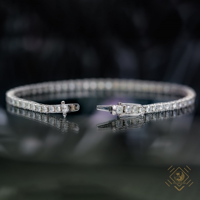 A typical tennis bracelet, shining with over fifty diamonds set in white gold. The tennis bracelet was named after Chris Evert, a great multiple winner of the Grand Slam tournaments. During the international tennis championship, the player interrupted the match to collect the diamonds scattered from a torn bracelet and so the bracelets with a row of small diamonds were named tennis bracelets. This piece, however, is more suitable for an evening out than for active participation in a tennis tournament.
