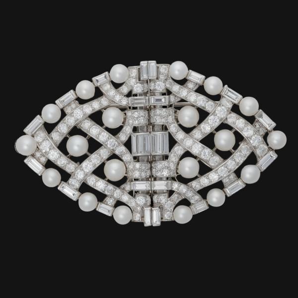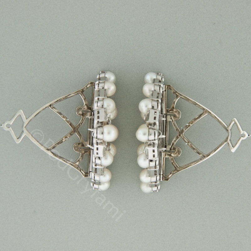 Two-piece brooch with diamonds and pearls