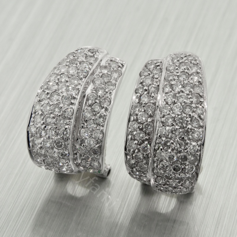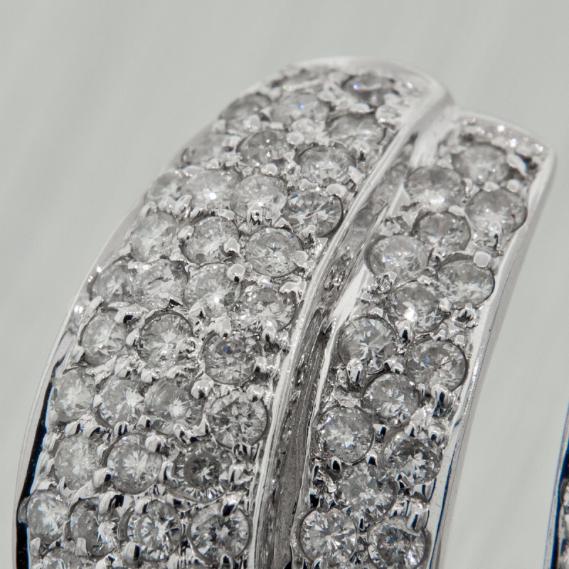 Over a hundred sparkling diamonds make these earrings for every occasion. The piece is made of white gold decorated with diamonds, ideally suited to the ear.