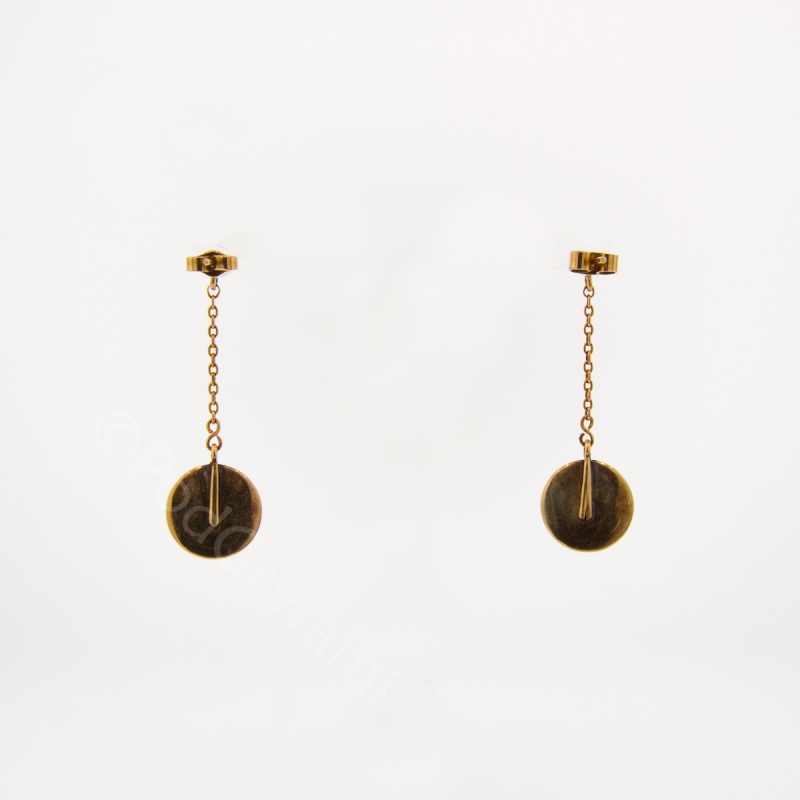 Long earrings made of gold and silver alloy. On a delicate chain in a continuous frame mounted on a base of a garnet cabochon. In the central part of the garnet is a small diamond, which with its delicate glow illuminates the dark purple color of this beautiful mineral.