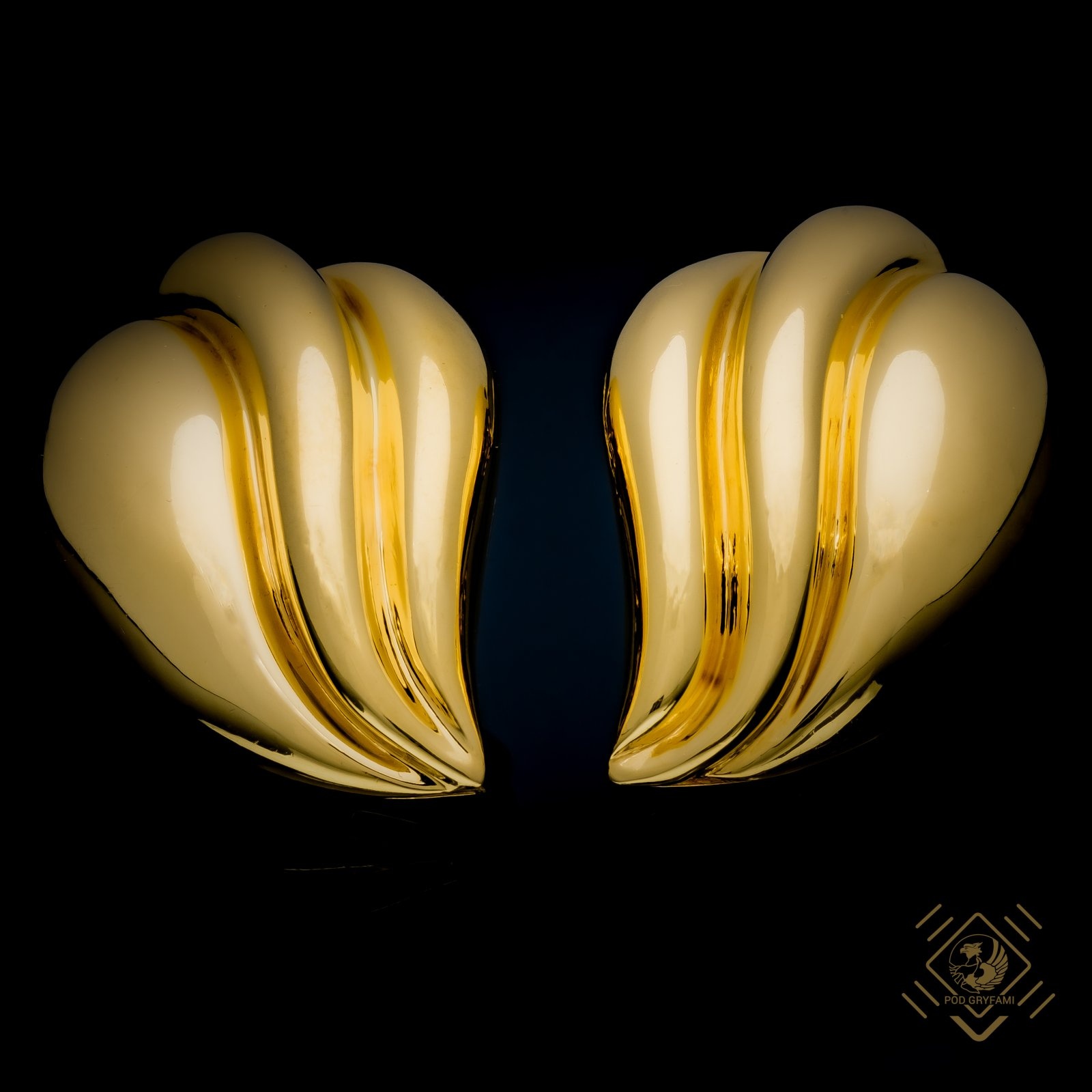 Opisywana para klipsów swoim kształtem nawiązuje do wzornictwa lat 80-tych XX wieku. Wyrazisty płomień podkreślony barwą osiemnasto karatowego złota. Piękna ozdoba ucha będąca doskonałym uzupełnieniem ,,małej czarnej".