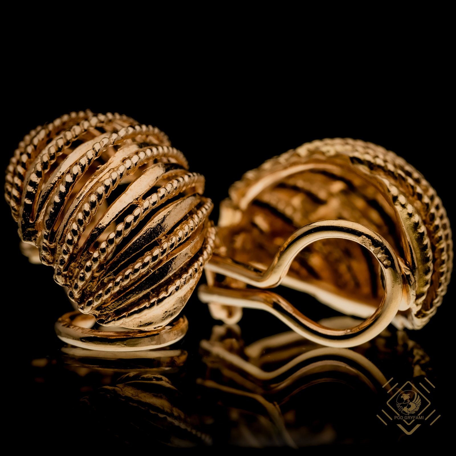 Nawiązujące w swoim kształcie do muszli klipsy zostały wykonane w osiemnasto karatowym złocie i ozdobione techniką zwaną ,,fil d`ange" lub ,, anielskim drutem". Idealnie prezentują się na kobiecym uchu podkreślając styl i szyk właścicielki.