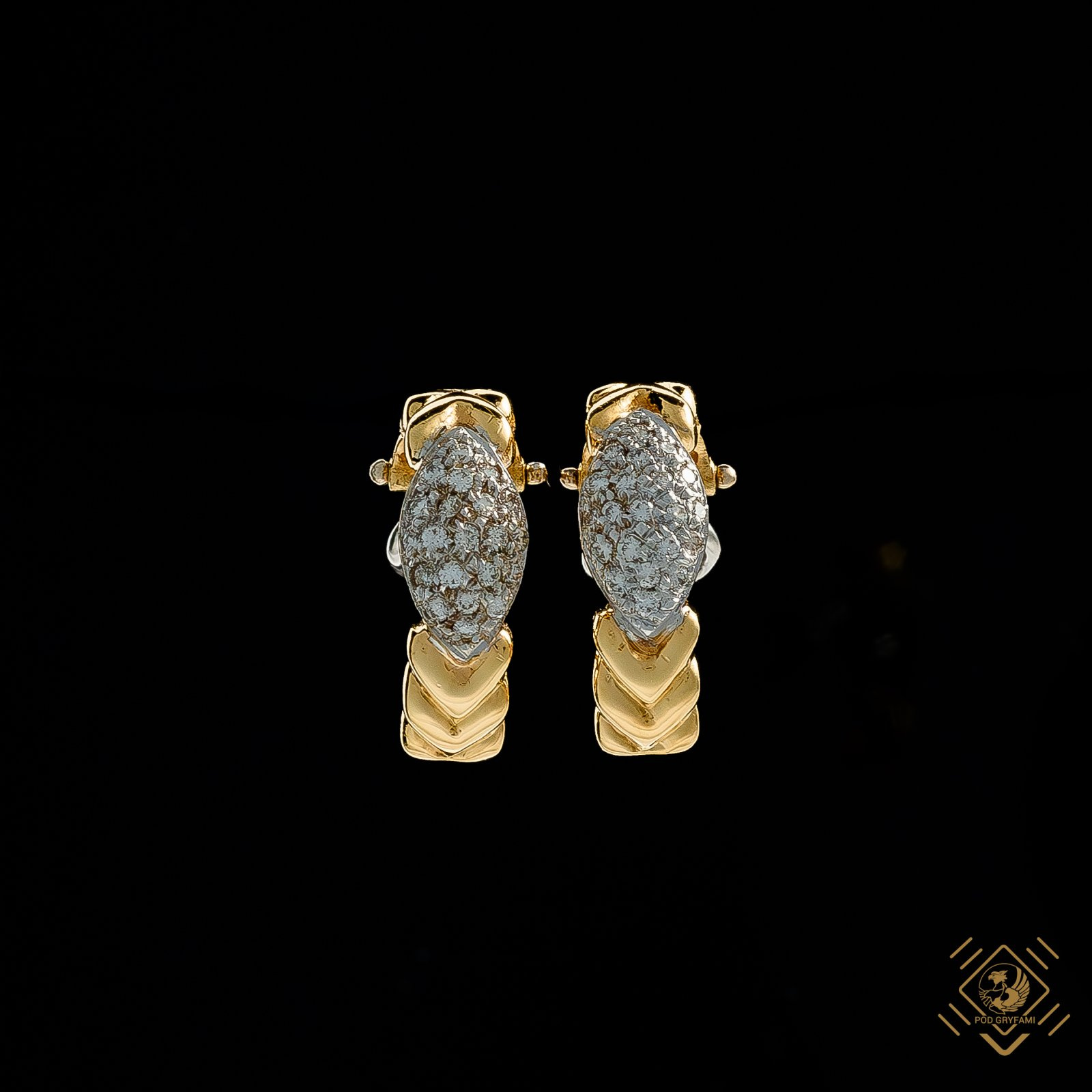 Delikatne łezki kameryzowane niezwykle połyskującymi diamentami oprawione w wysokiej próby złoto. Prosty bardzo kobiecy wzór wspaniale zdobi płatki uszu doskonale się na nich układając.