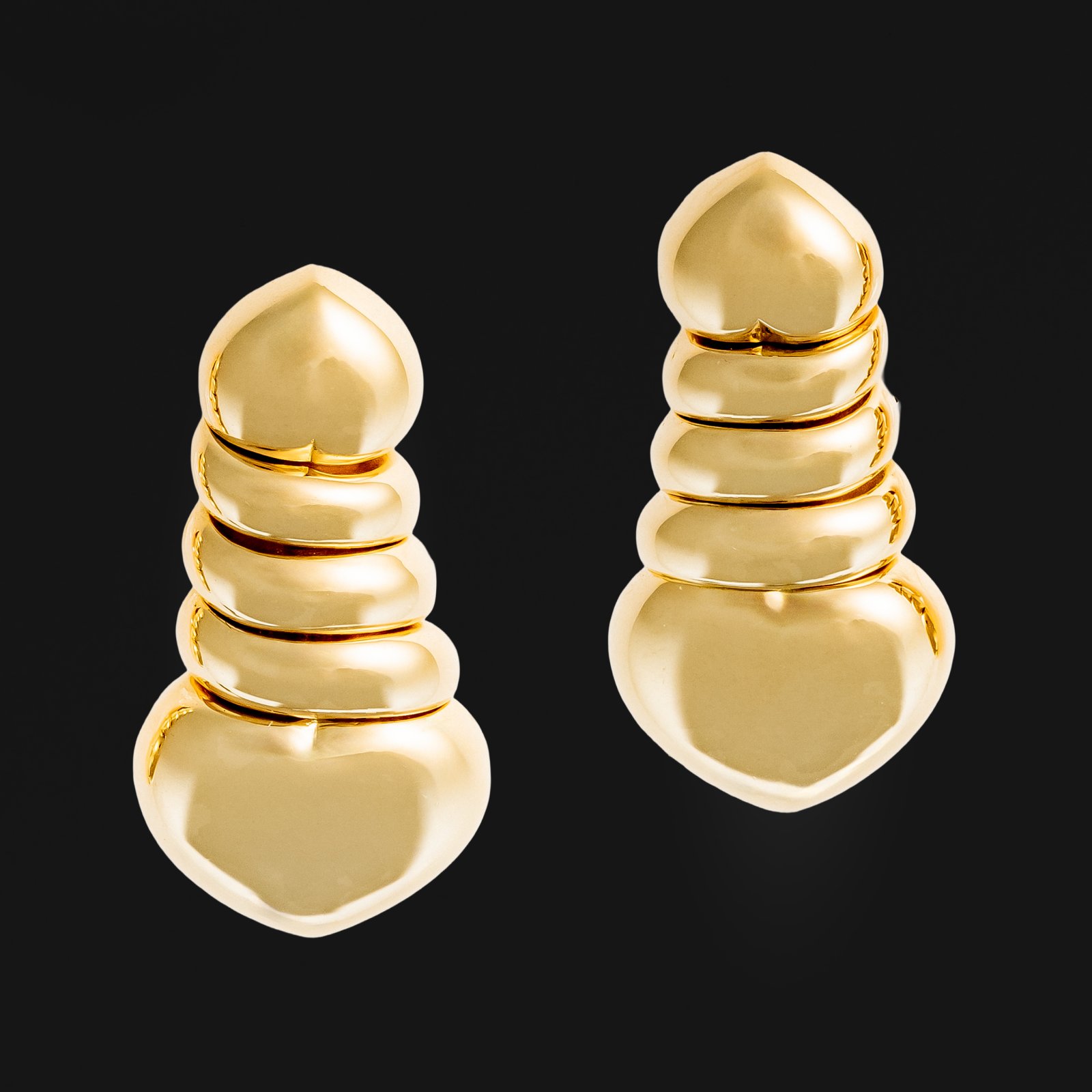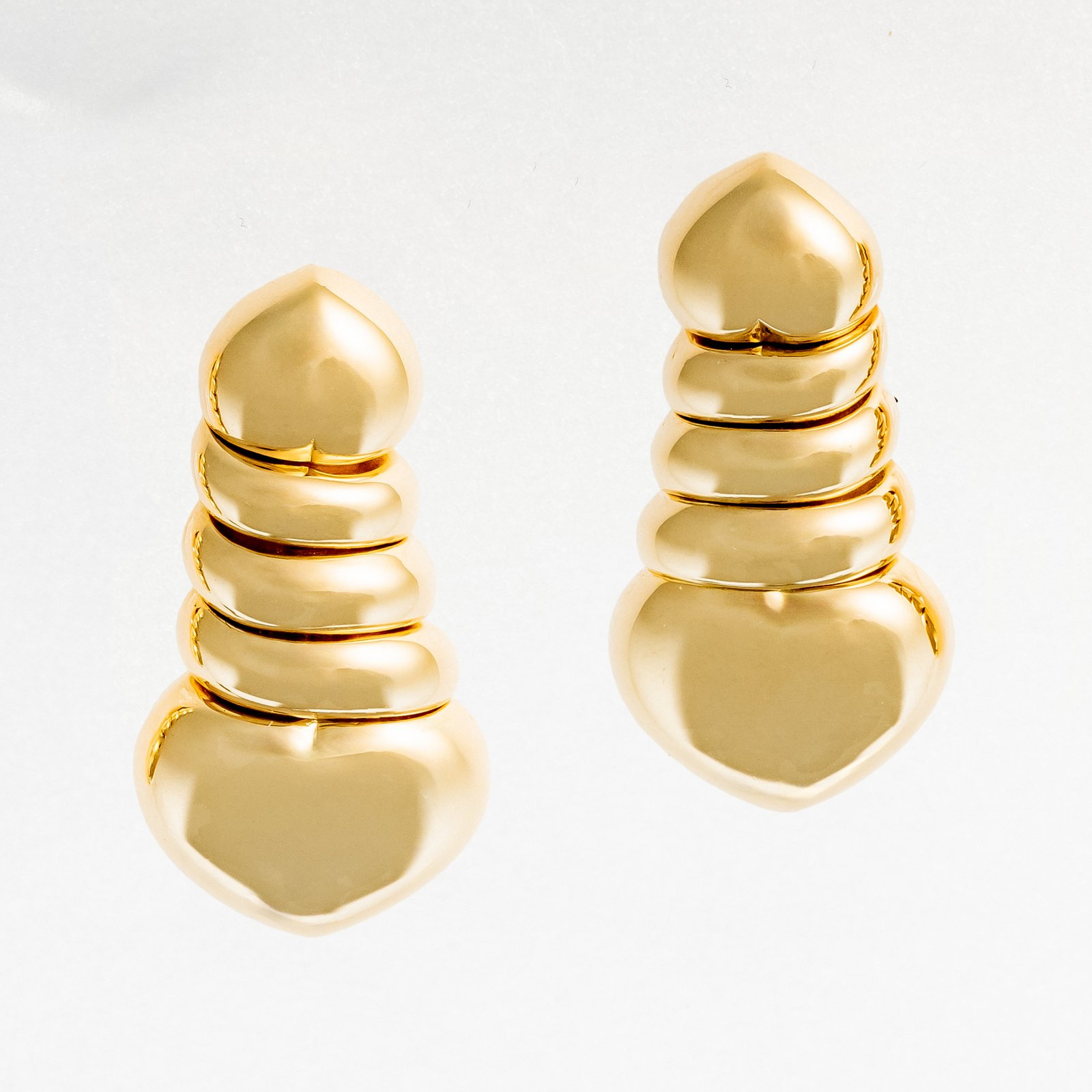 Niebanalna para klipsów wykonana w 18 karatowym złocie w formie połączonych czy też splecionych ze sobą serc. Klipsy zaopatrzone kompletem punc w tym znakiem mistrza ( unikalna sygnatura wybita przez twórcę ). Klejnot z kolekcji ,, Lines de coeurs " powstał w mistrzowskiej pracowni Jean-Pierre Brun na zlecenie paryskiej marki Fred.