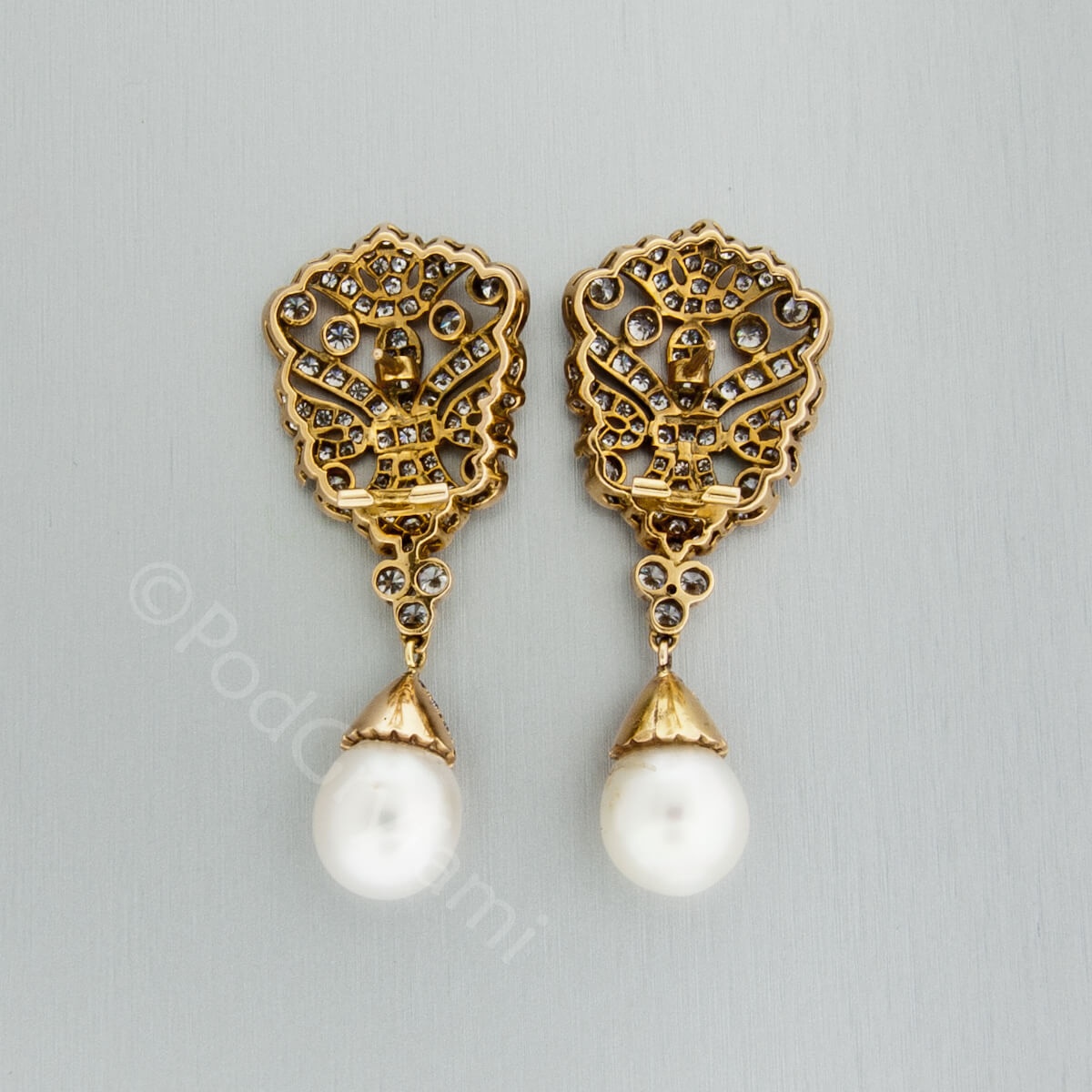 Na niewielkiej powierzchni fantazyjnie giętego wzoru skrzy się 210 sztuk diamentów, całości dopełniają idealnie dobrane perły o srebrzystobiałej barwie. Doskonałe uzupełnienie wieczorowej kreacji.