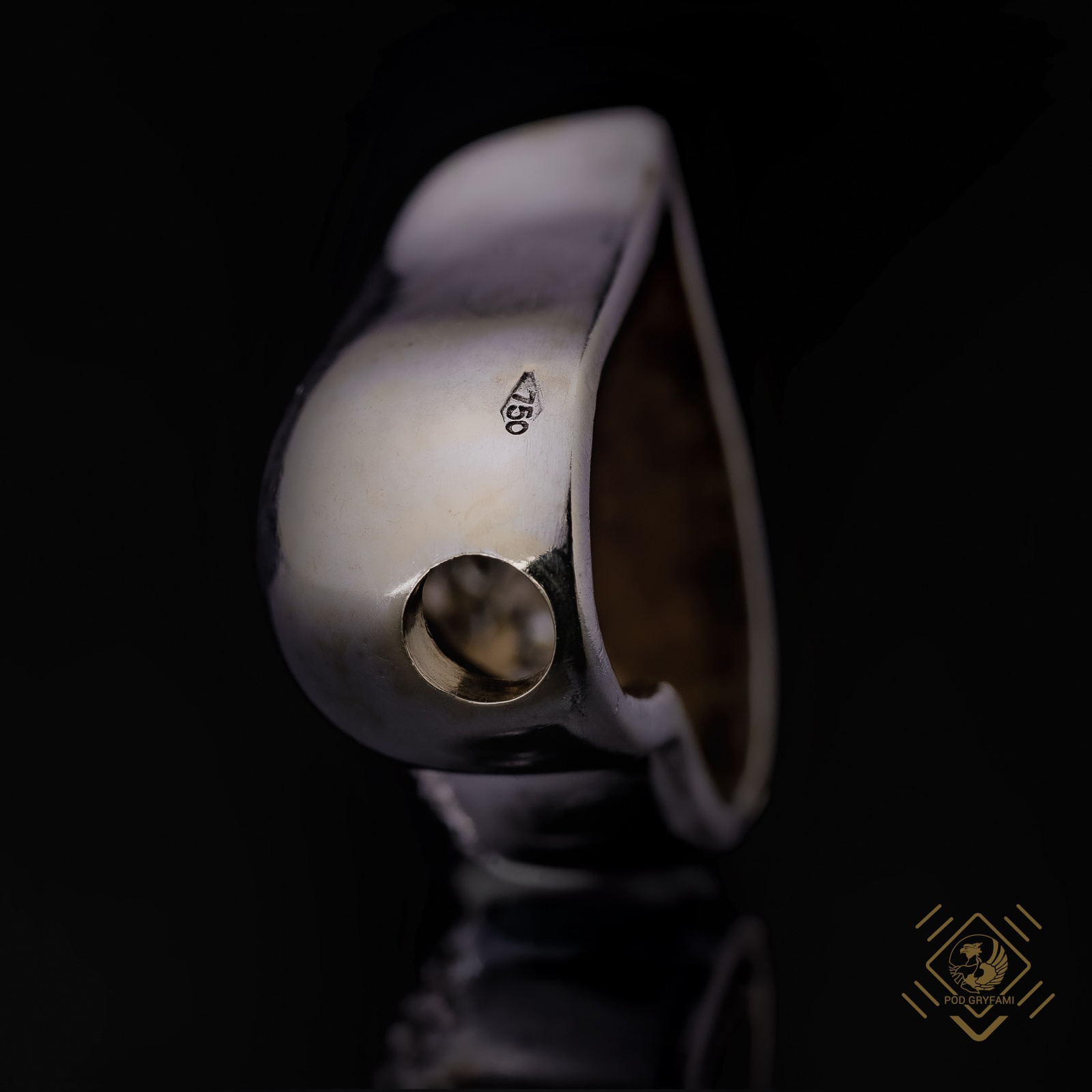 Uroczy drobiazg wykonany w białym 18 karatowym złocie w kształcie serca w połowie kameryzowanego diamentami.