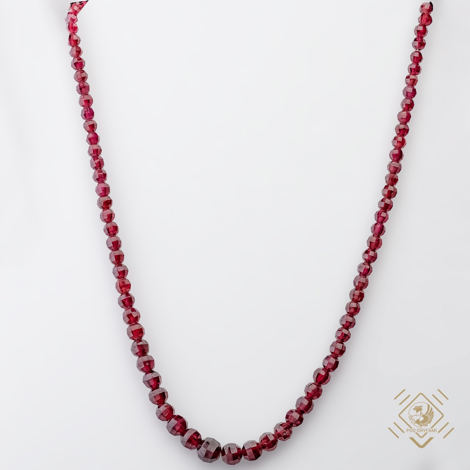 Pojedynczy sznur granatów, których największym atutem jest fasetowy szlif doskonale odbijający światło.