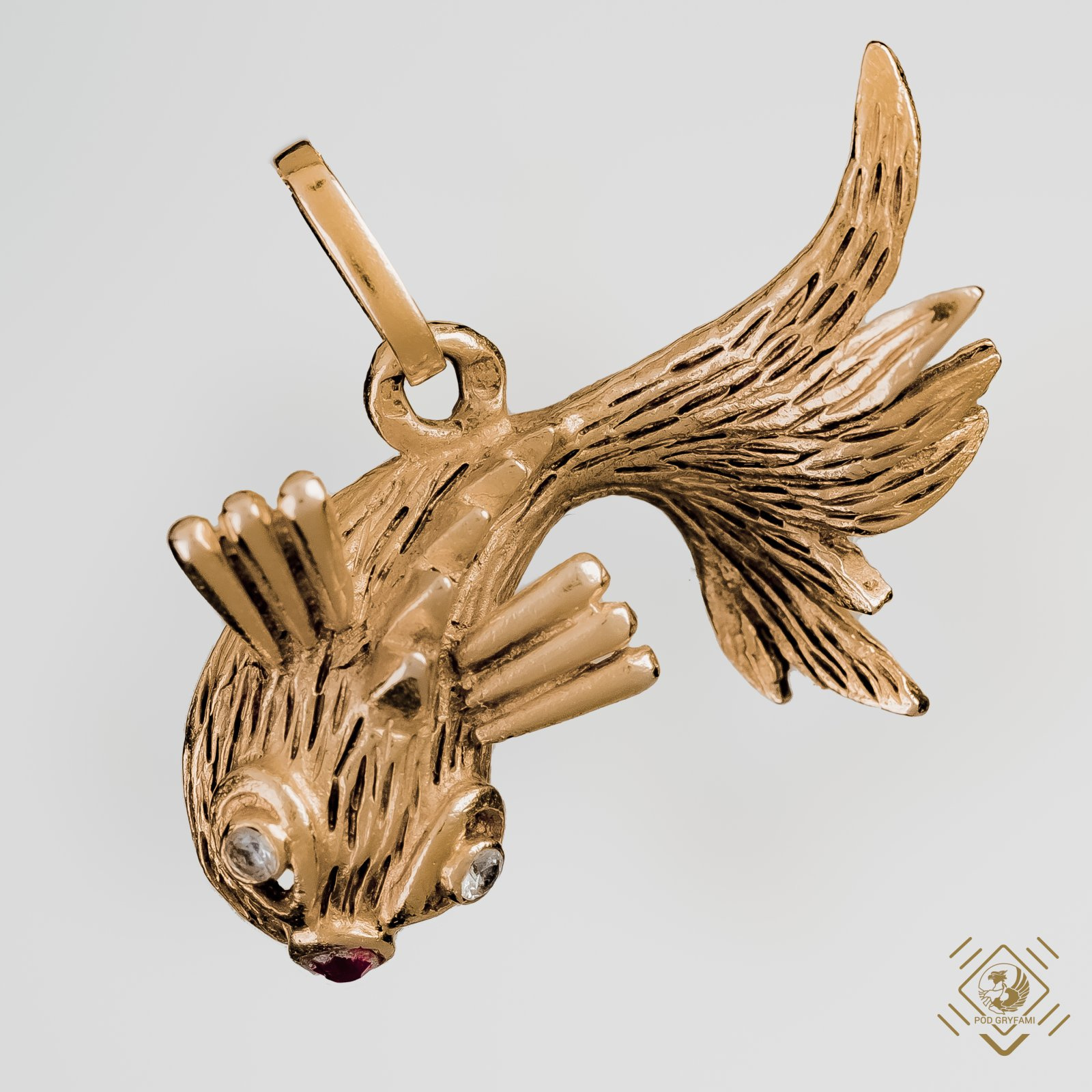 Wisior wykonany w pierwszej połowie XX wieku. Artysta złotnik zainspirowany ichtiofauną stworzył wspaniałą fantazję nawiązującą do kształtu ryby. Pomysłowość wykonawcy oraz ręczna praca w wysokiej próby złocie świadczą o jego wysokim kunszcie artystycznym.