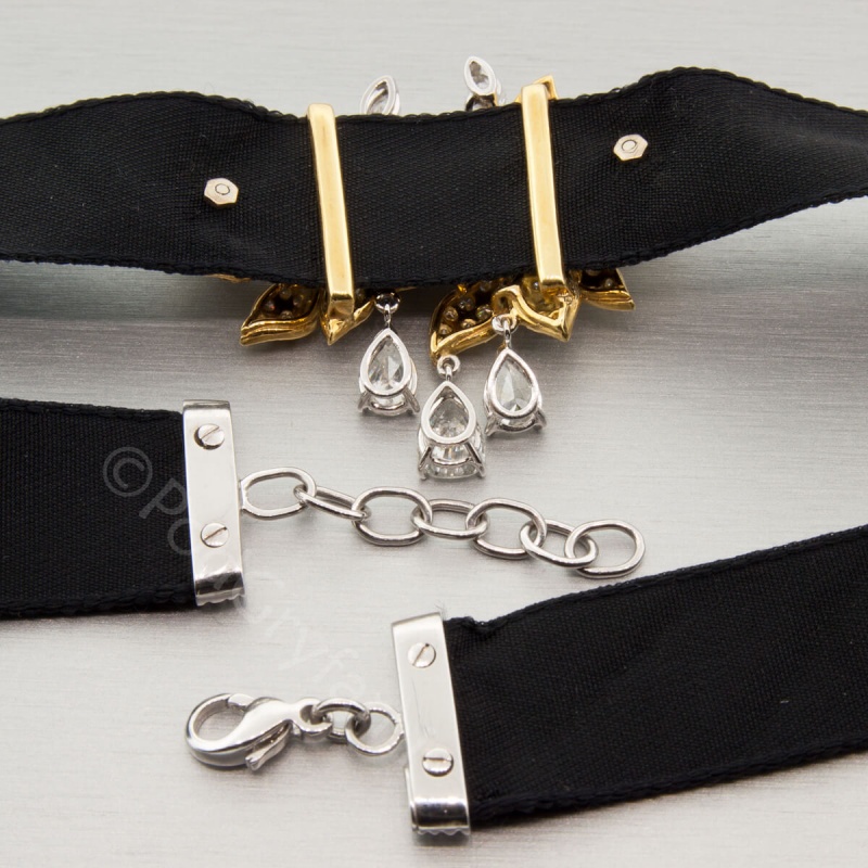 Ribbon: Length 33.5 cm Ribbon – cloth with a golden clasp.