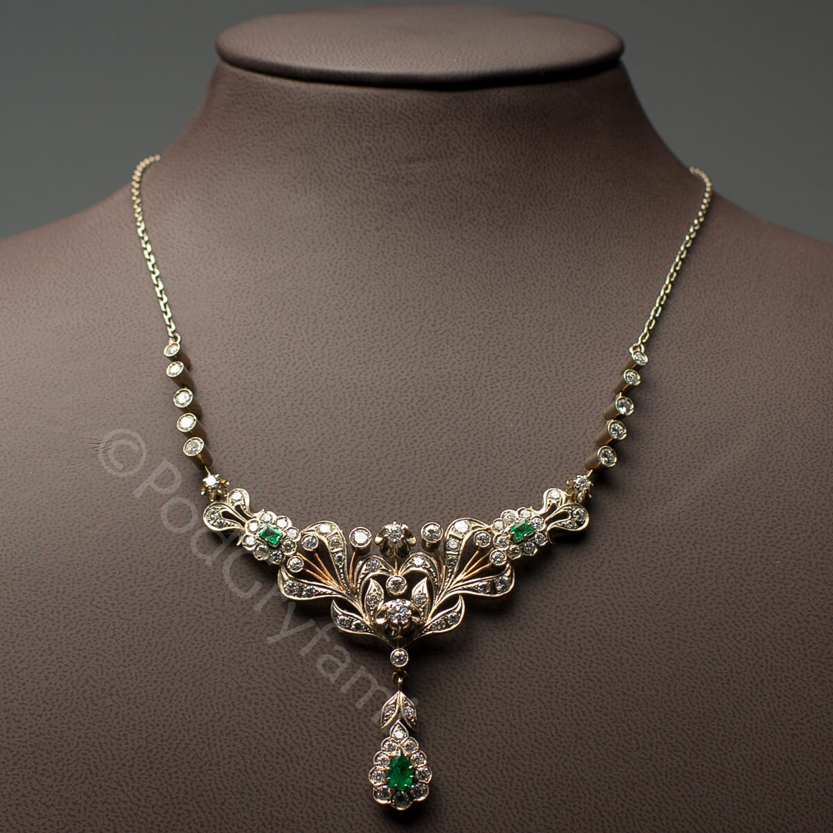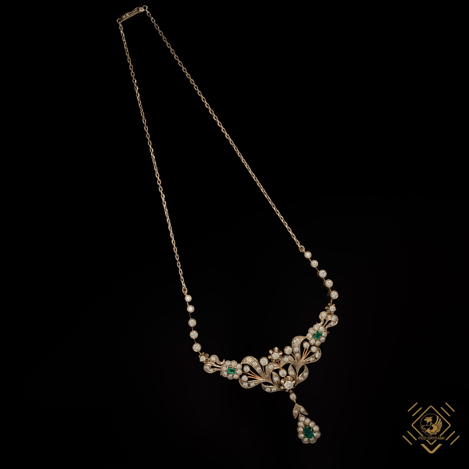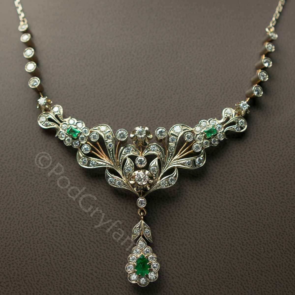 Naszyjnik z diamentami i szmaragdami