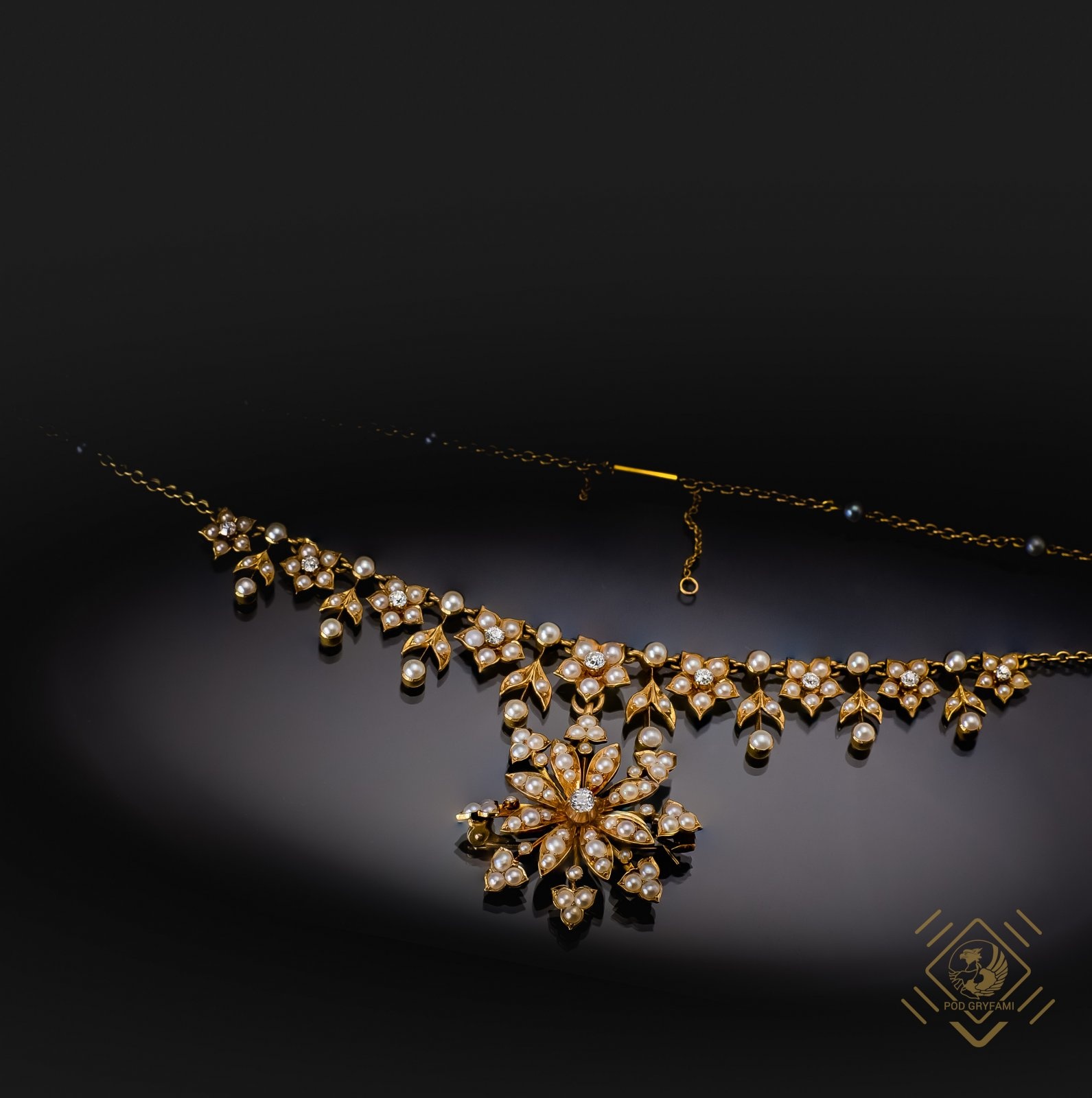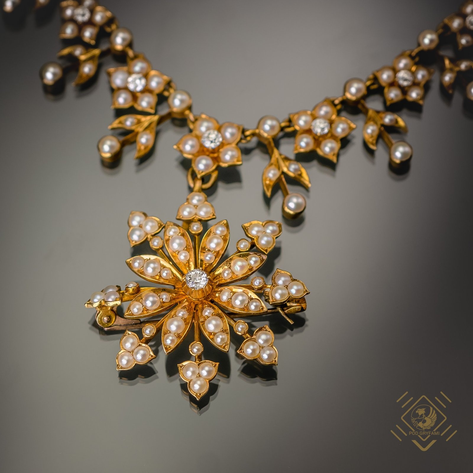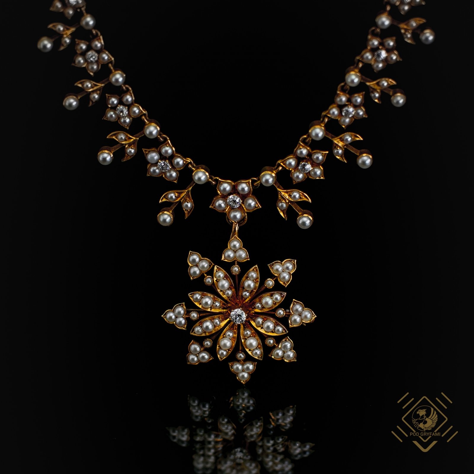 Secesyjny naszyjnik z perłami i diamentami