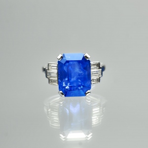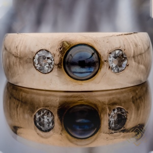 Pierścień z szafirem, diamentami i rozetami diamentowymi