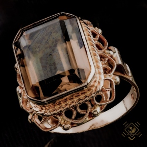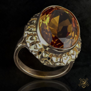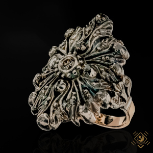 Pierścionek z chryzoprazami i rozetami diamentowymi