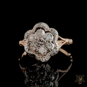 Pierścionek Art Deco z diamentem i rozetami diamentowymi