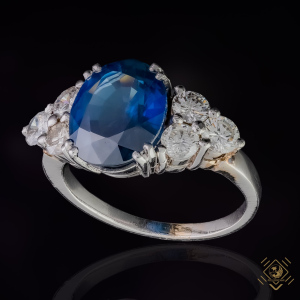 Majestatyczny pierścień z szafirem i rozetami diamentowymi